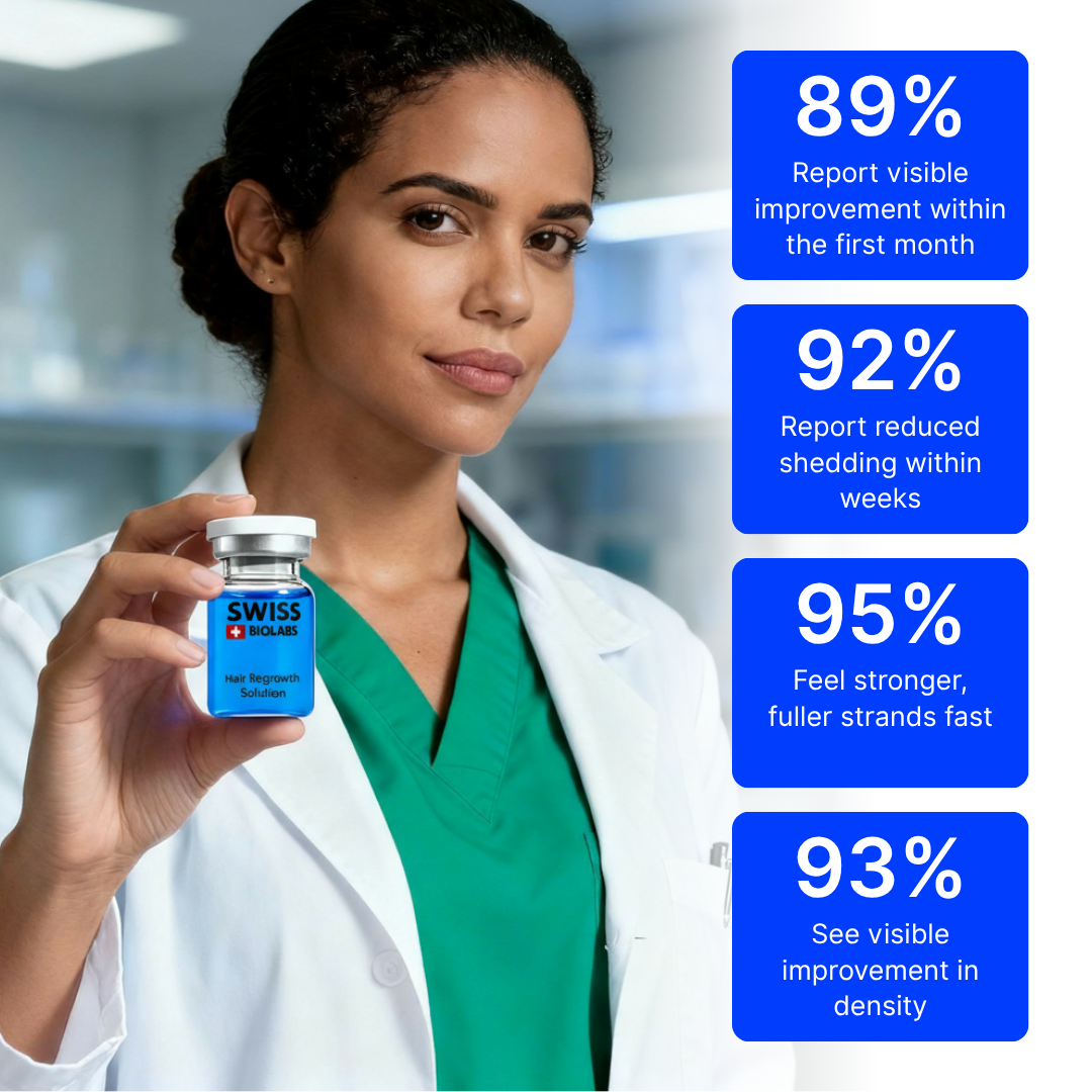 Combined with Swiss Biolabs' Micro-Infusion Technology, GHK-Cu is delivered deep beneath the skin barrier — directly into the follicular zone — achieving maximum absorption and measurable results far beyond standard topical treatments.